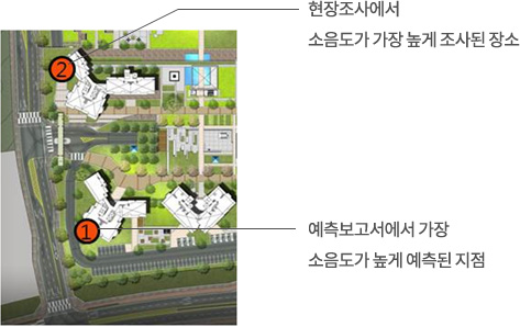 공동주택에서 인근 도로 및 철도 발생소음이 건물의 실내 및 실외에 미치는 영향을 사업계획 승인단계 시 예측하고 사용검사단계 시 준공 측정하여 주택건설기준 등에 관한 규정 제 9조의 법적기준에의 적합성 판단 기준에 의해 평가한다.