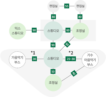 라디오 스튜디오 주변의 500Hz 기준의 실간 음압레벨차 표음값 D’