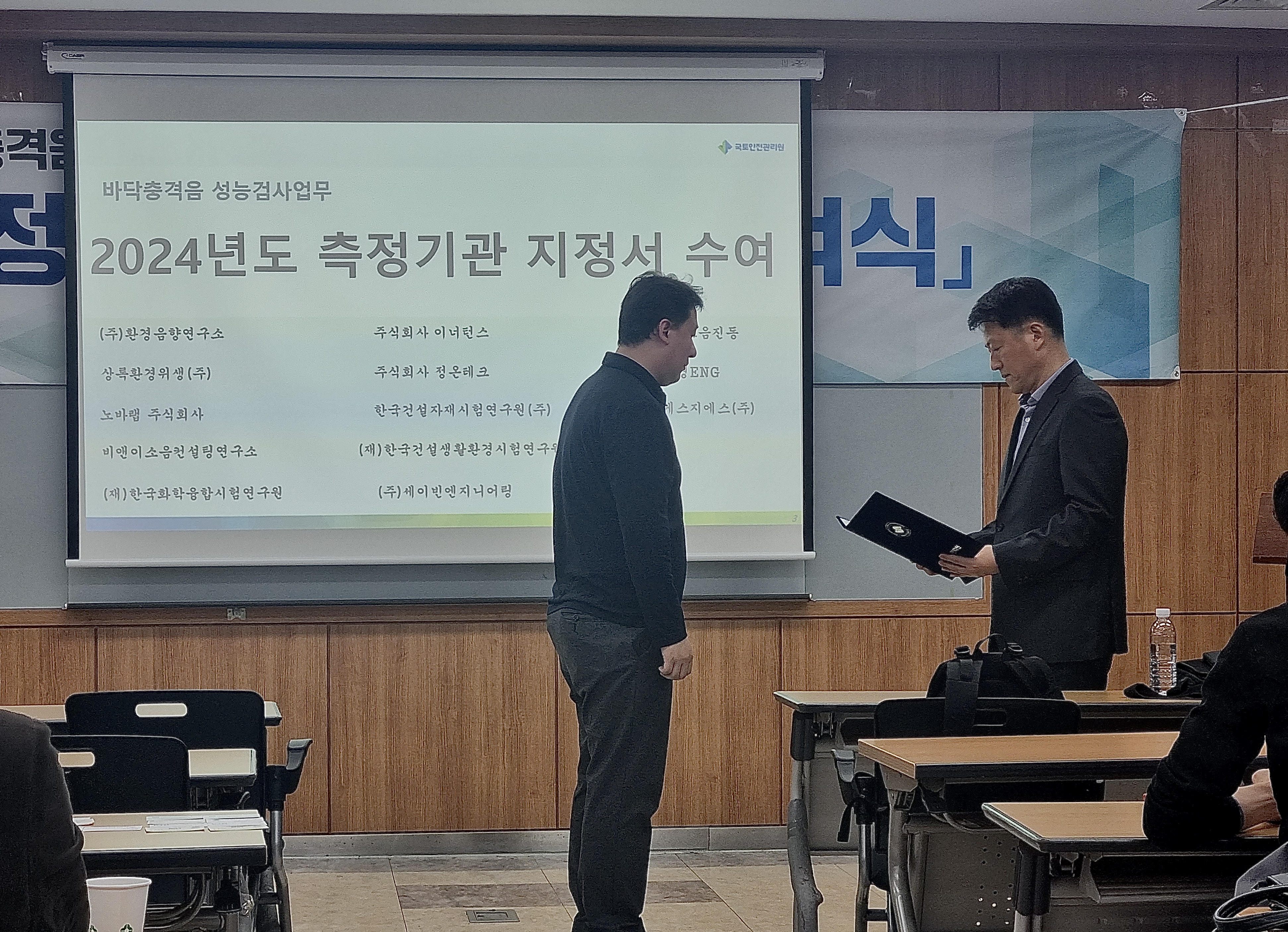 바닥충격음 성능검사업무와 관련하여 2024년도 측정기관으로 선정되었습니다.